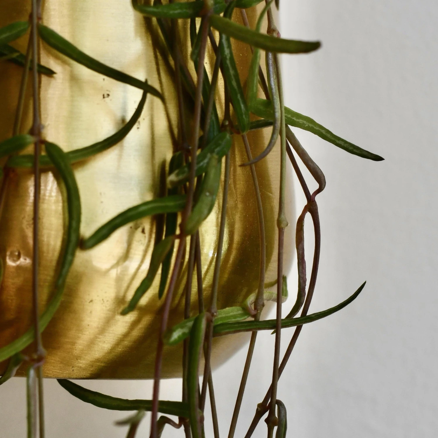 The golden hues of brass of our Atsu planters really extenuate the smooth contours of this elegant hanging pot. The brass is a striking back drop against green foliage making an eye -catching combination. Each planter is hung with leather ties.