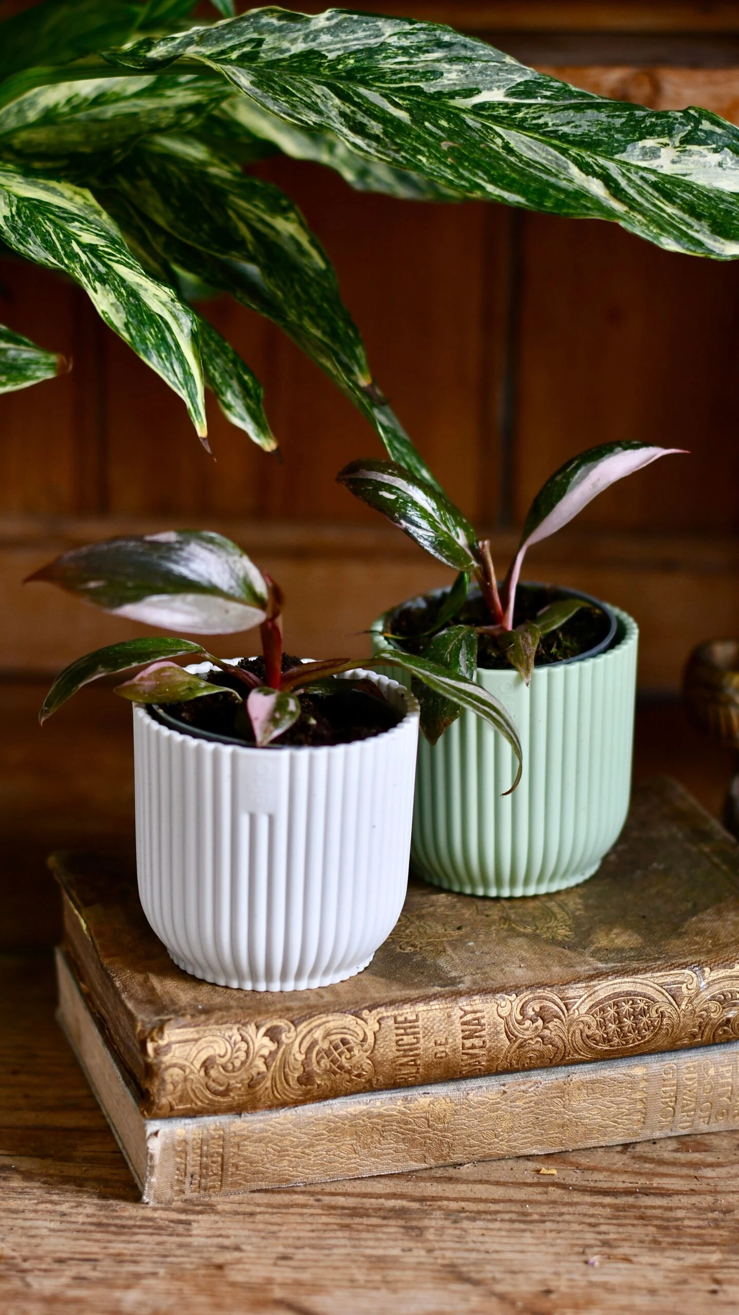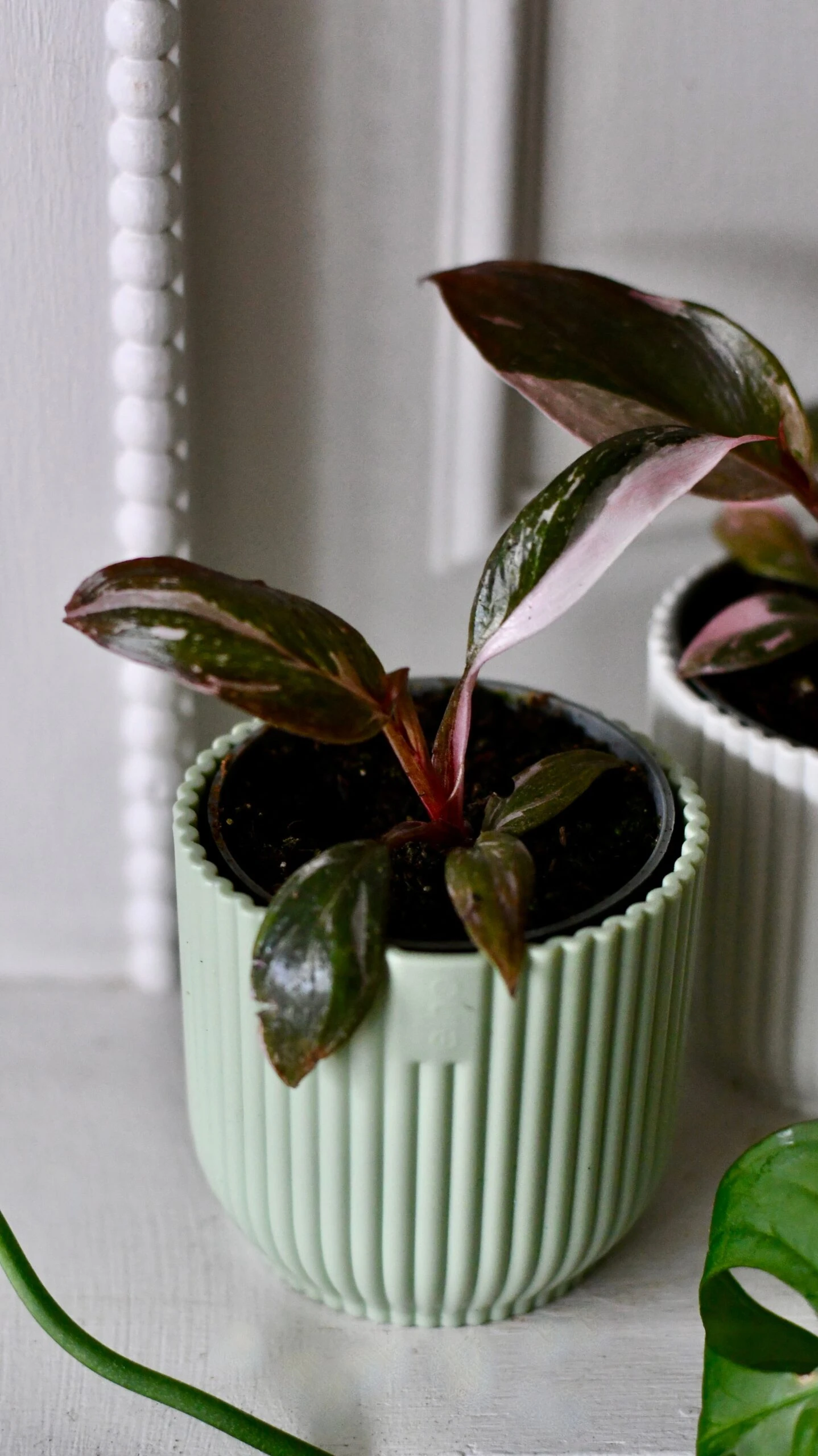 To create a mini tropical oasis, pair the Baby Pink Princess Philodendrons with other small lush plants, adding a touch of depth and texture to your indoor jungle.