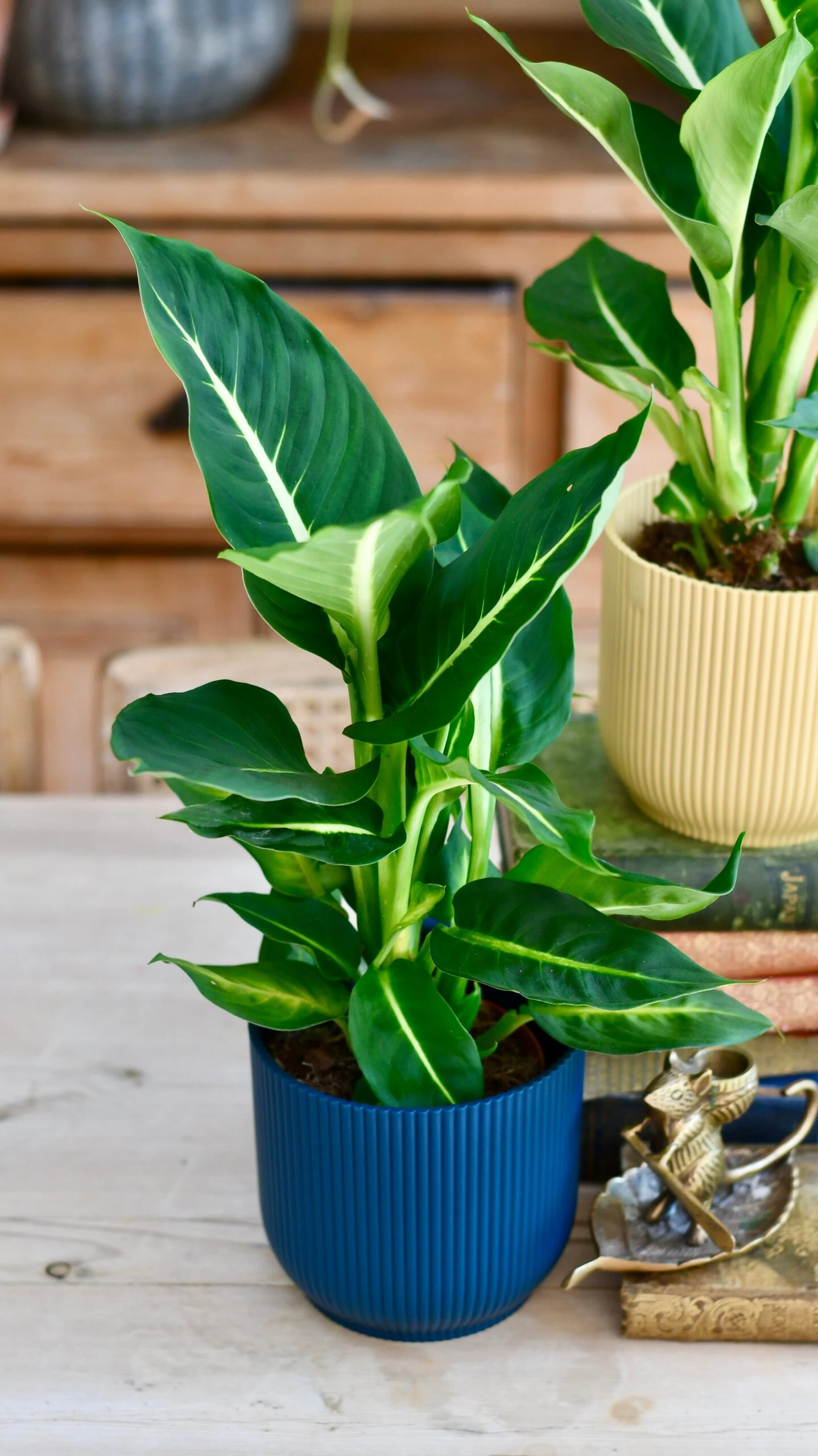 The Dumb Cane has beautiful leaves and offers instant impact. The impressive Dieffenbachia Green Magic is a variant of the regular Dumb Cane which creates instant impact in any room with its striking emerald leaves. Low-maintenance and an excellent choice for anyone new to growing houseplants. The Dieffenbachia Green Magic will thrive as long as it’s watered only when it’s completely dry and kept in a warm and sunny spot.