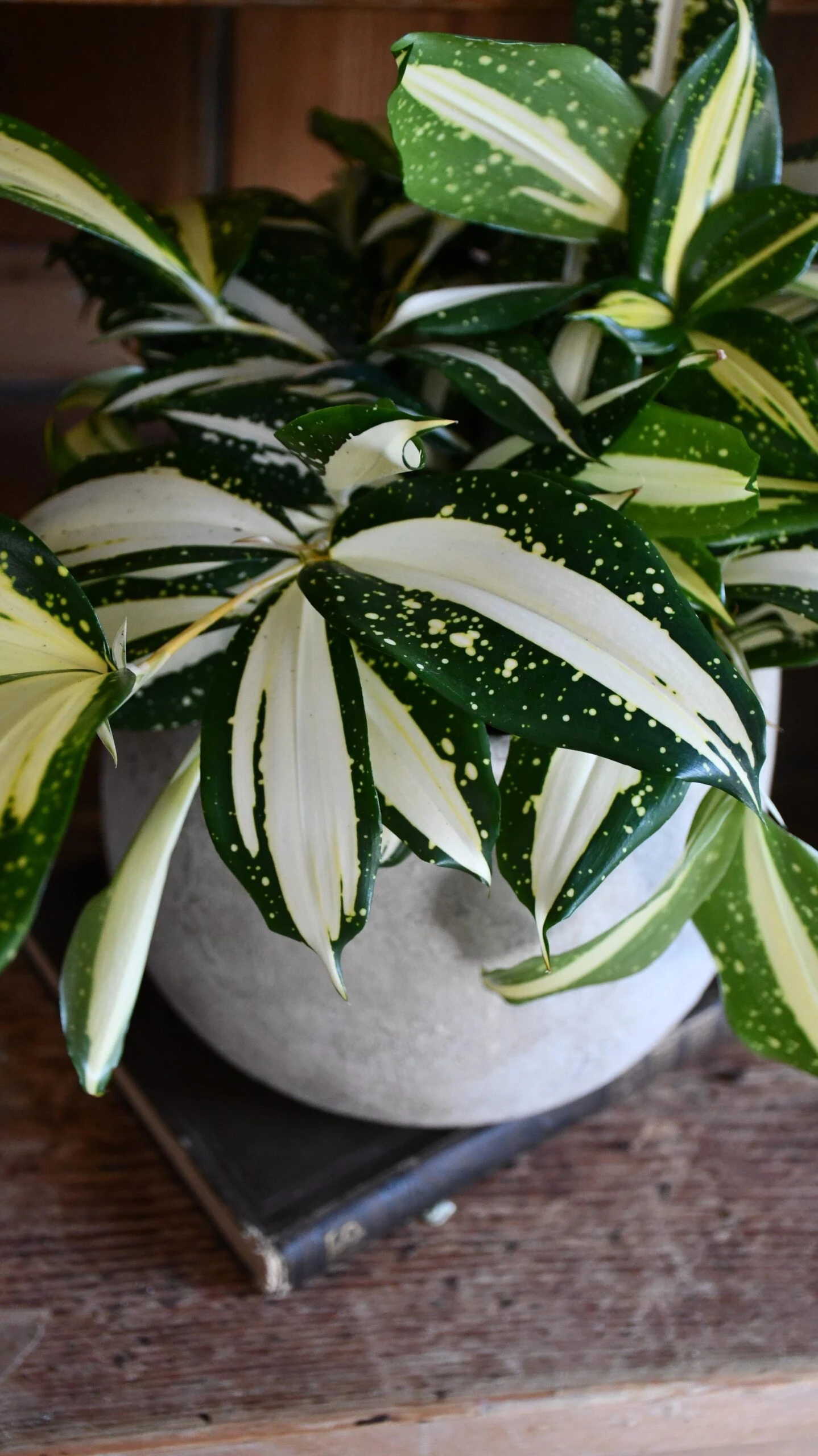 We have been searching for ages to get hold of this very hard to find plant – it has absolutely stunning bright white variegated foliage! The wonderful Dracaena Milky Way is a Dracaena Surculosa and makes a wonderful easy-care houseplant as long as you are prepared to provide the right conditions.Â