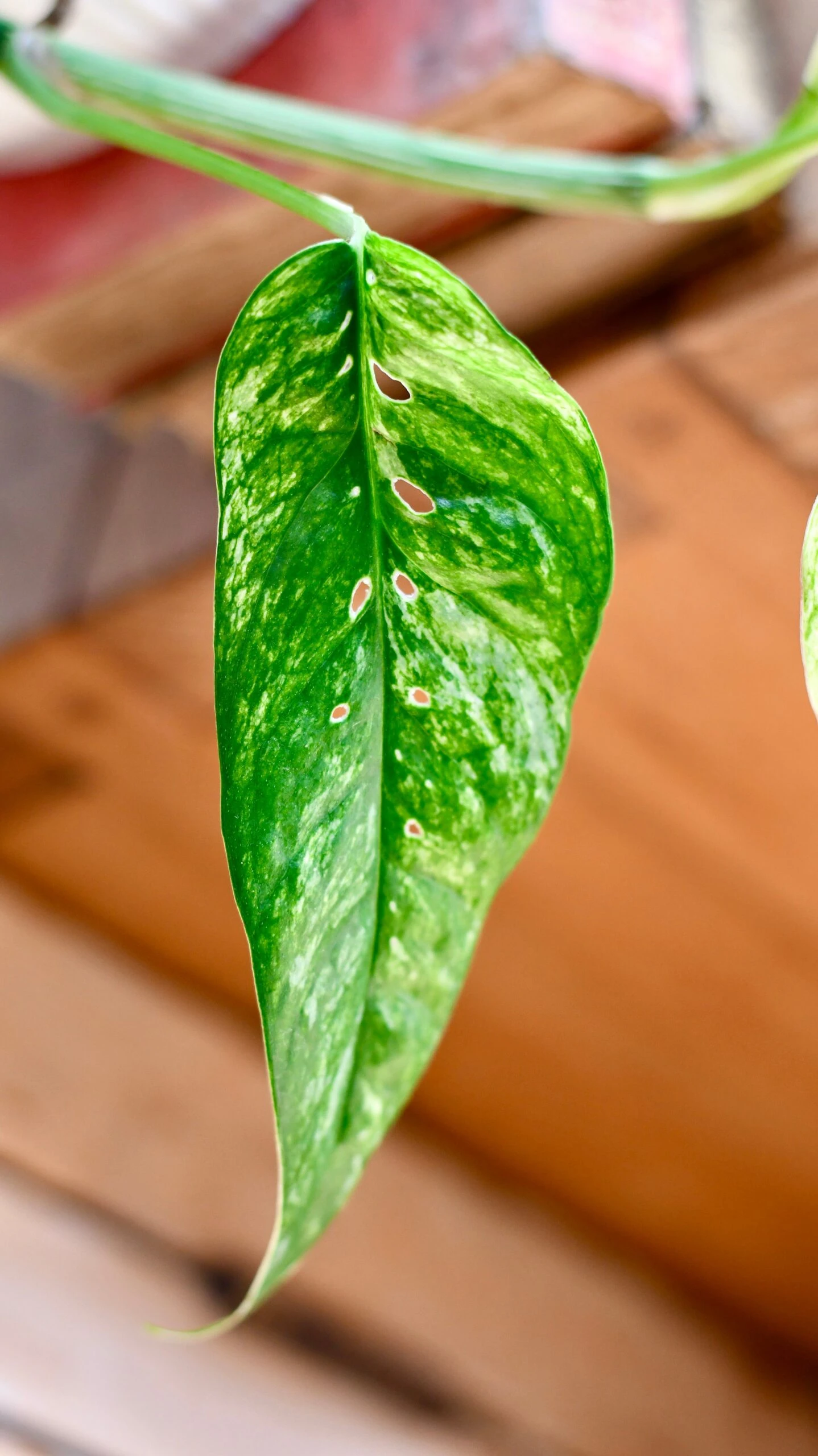 Epipremnum Pinnatum Variegated  has stable variegated leaves, unlike the monstera albo its ideal for hanging baskets and planters due to its delicate shaped leaves.Â