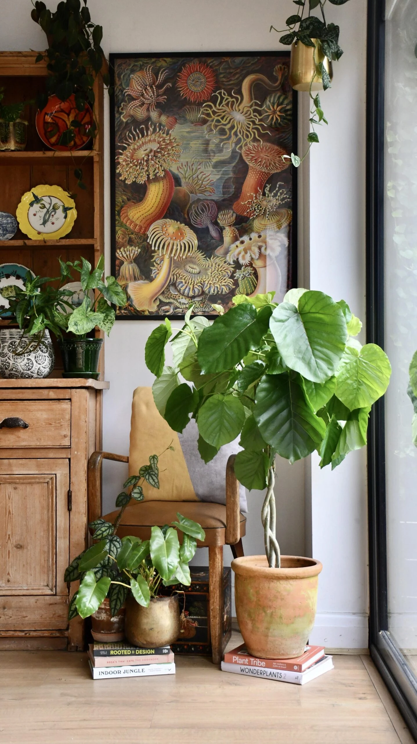 Originating in Africa but very popular in Japanese culture, this fig has elegant, tall stems and huge emerald green leaves that are gloriously shiny. It’s a little different from the Fiddle Leaf Fig but nevertheless a very interesting houseplant for any collection – particularly if you like to collect from the Ficus (Fig) family of large houseplants.