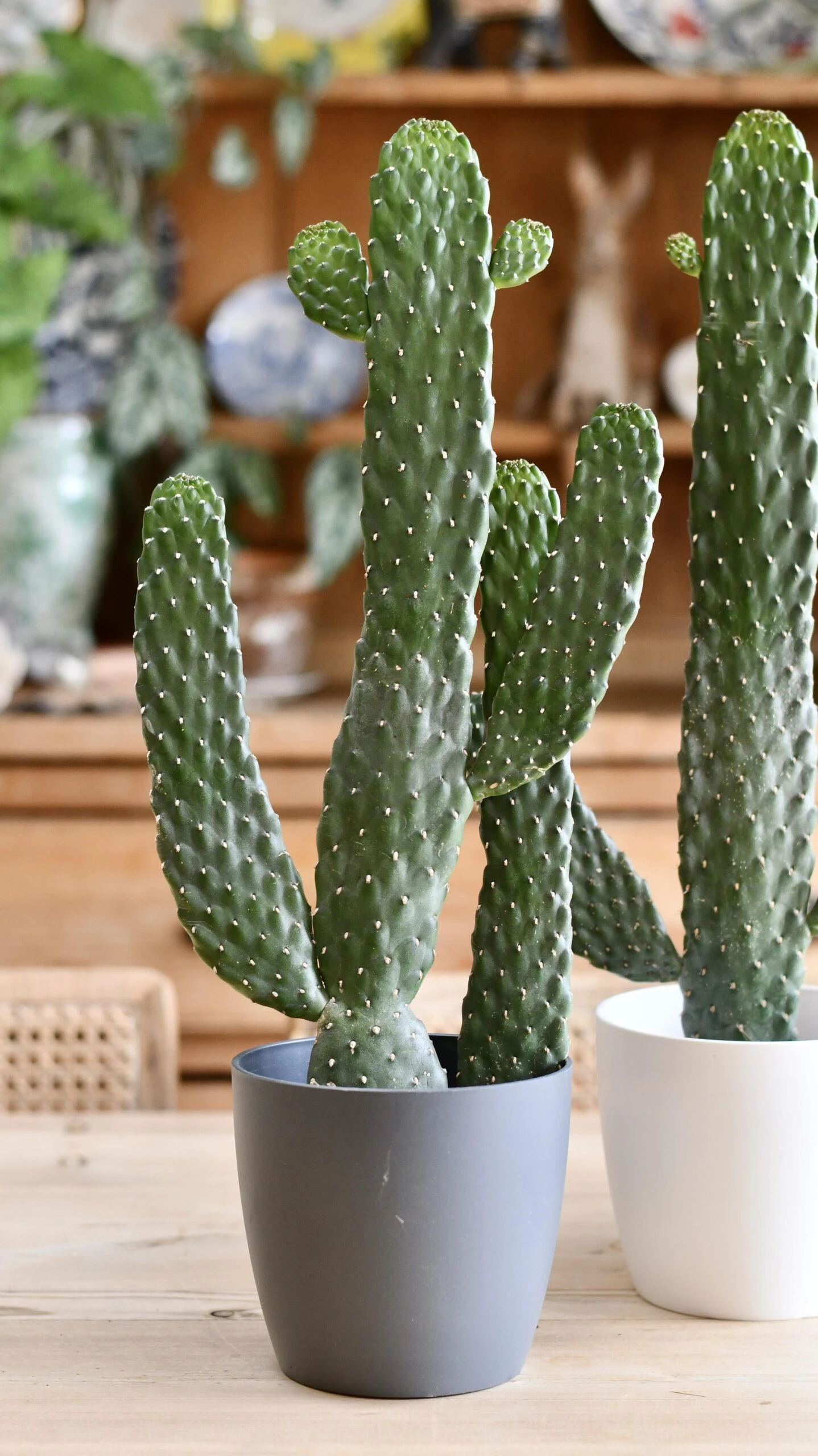 We love this crazy cactus for its unusual shape, Opuntia Rubescens Consolea is also known as the Road Kill cactus because of its flat appearance. This plant requires very little pampering to become established. In fact, more die from too much care and watering than from neglect. Make sure you give your Opuntia well-draining soil and lots of sunlight. It’s a perfect plant for urban living and a really beautiful and striking plant.Â