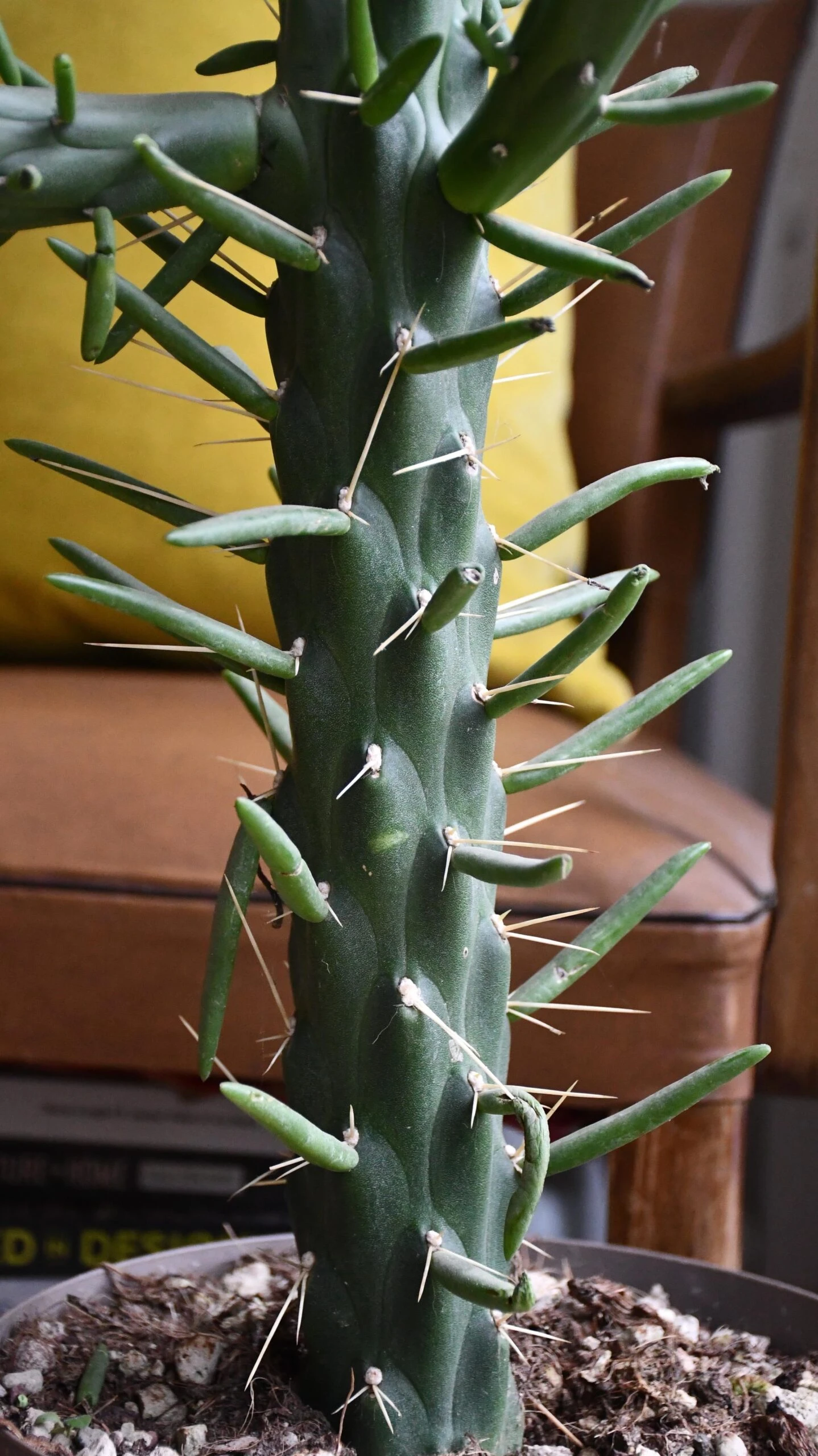 Opuntia Subulatais a strikingly beautiful succulent native to Peru, characterised by cylindrical, branching trunks with small thorns and conical-shaped leaves. Very decorative with a unique, sculpture-like appeal when grown as a single specimen indoors.