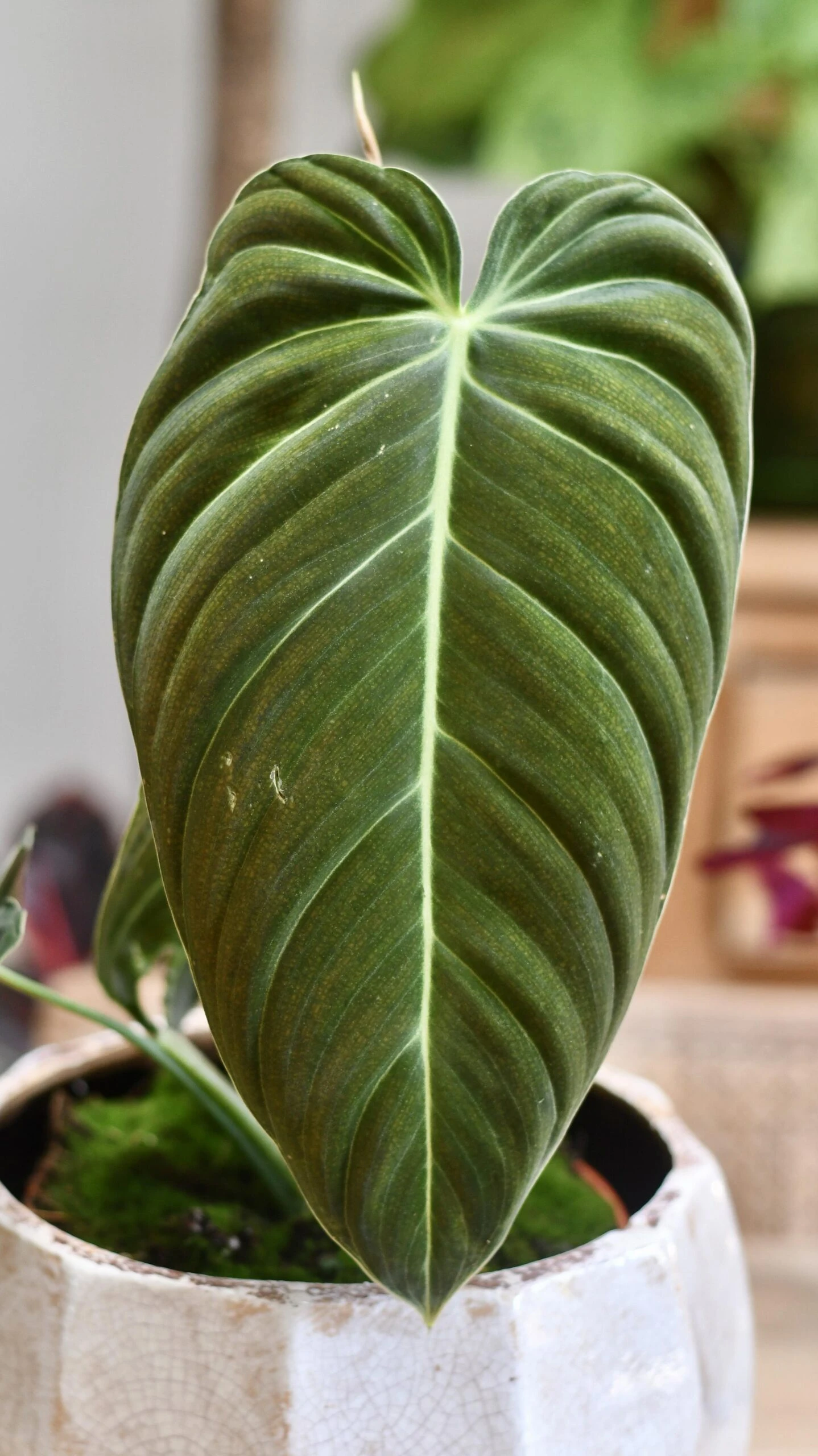 Philodendron melanochrysum is a striking rare plant with exquisite foliage that becomes more and more beautiful as the plant matures. The Young plants we are selling here have smaller, broader, copper-red leaves, but when established they mature into superb plants with stunning long leaves; they have a velvety sheen with beautiful, pale green veins. Philodendron melanochrysum or black gold philodendrons is one of the best climbing foliage plants, with large heart-shaped leaves that are typically 20-30cm long. When grown in ideal conditions they can grow even longer. One of the most popular Philodendron on Instagram, it just gets better and better with age.
