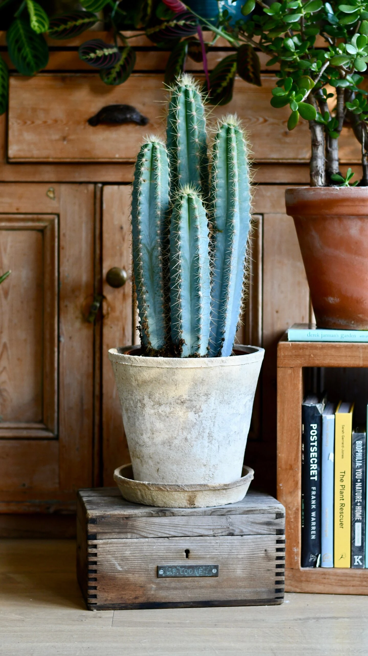 Pilocereus pachycladus azureu will provide a strong accent amongst more leafy plants or as a stand-alone feature in a room. Many people feel intimidated by cacti, but they are easy to look after and rewarding because of their sculptural looks. Stylish isn’t a strong enough word – think the front page of a magazine, and you’ve got the impact about right!
