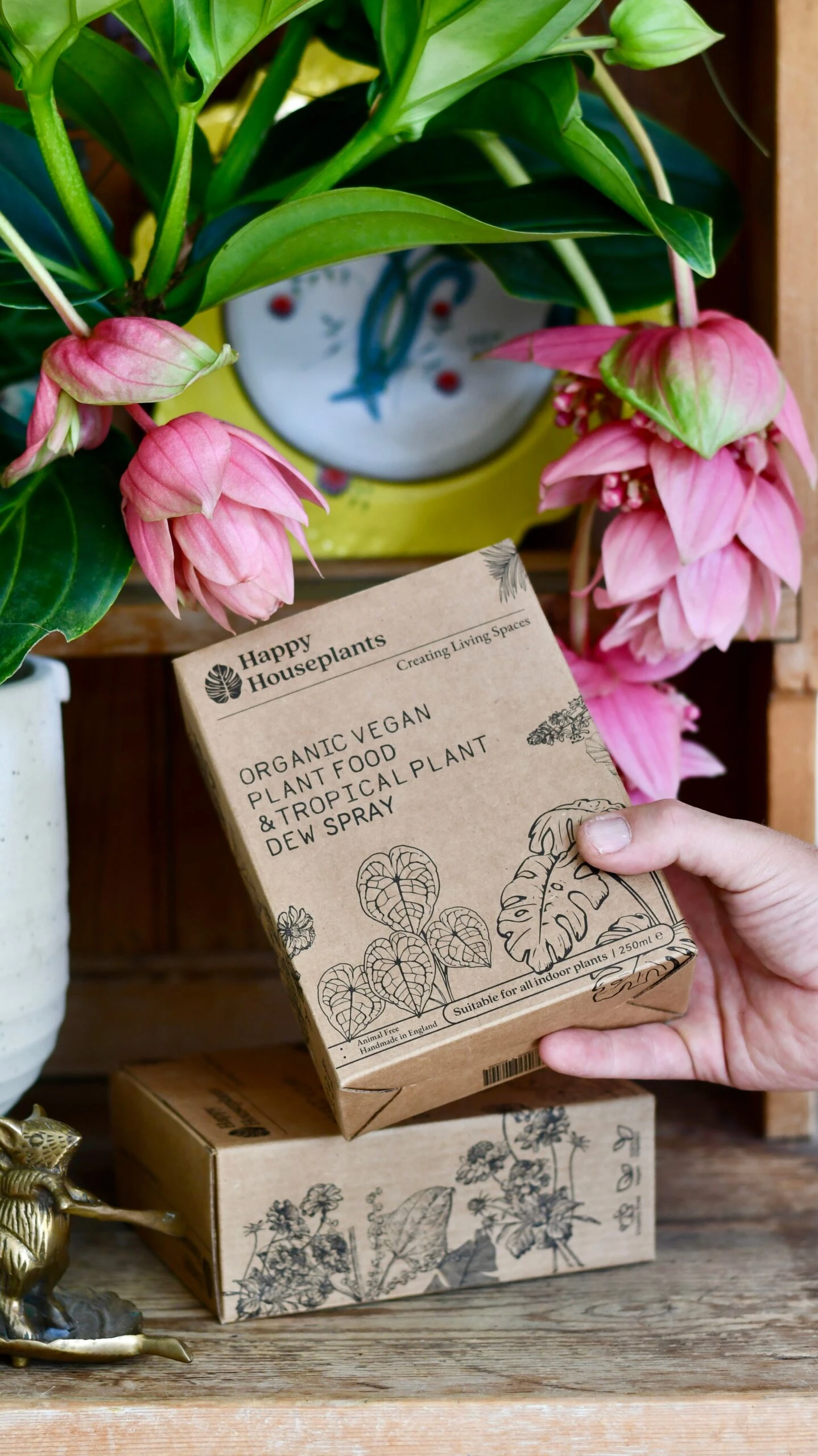 Welcome to Happy Houseplants, where you’ll find the best houseplant food in the UK! When it came to developing our original Happy Houseplants’ Organic Tropical Plant Food and Dew, we decided not to tinker with it too much, so you’ll find no chemical supplements in this 100% cruelty-free vegan Gift Set. Our Organic Tropical Plant Food and Dew Gift Sets are the perfect indoor houseplant food for plant lovers who seek natural and organic solutions to care for their green companions.