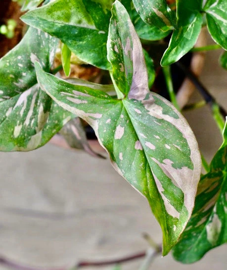 Syngonium Podophyllum Pink Splash Watering: To keep this plant happy and healthy, water it when the top two inches of soil are dry. Avoid overwatering, as this can lead to root issues. Consistent moisture without waterlogged soil is the key to its well-being.
