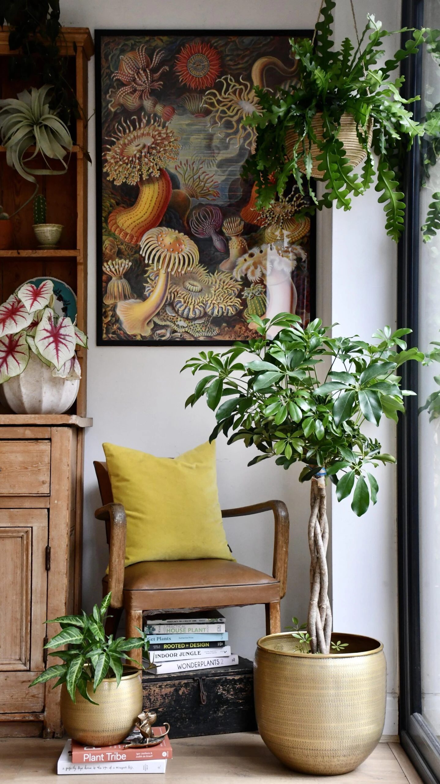 Umbrella plant care is really easy which is why it makes a great plant if you’re not used to houseplants. The main things are to make sure you don’t overwater and to put it in indirect light so that the leaves don’t shrivel and burn. It will also tolerate low light – in fact, we find that they grow more slowly and become leggy in low light, which is actually a great look!