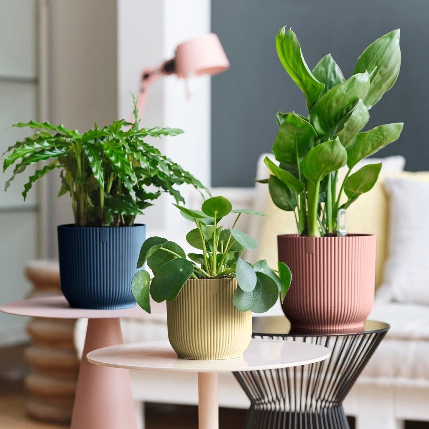 The new indoor vibes family fits perfectly into the vibes of a cosy, harmonious, fashionable, friendly interior. The pots will bring out the best in your indoor plants with their slightly rounded body, soft tones and decorative pattern.