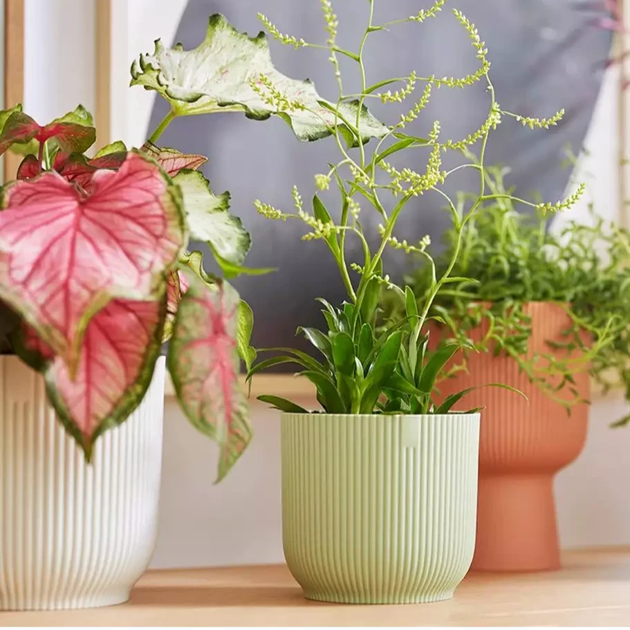 The new indoor vibes family fits perfectly into the vibes of a cosy, harmonious, fashionable, friendly interior. The pots will bring out the best in your indoor plants with their slightly rounded body, soft tones and decorative pattern.